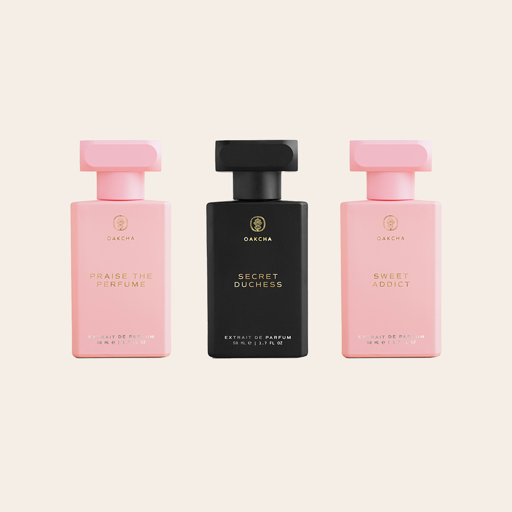 The Oakcha bundle includes sweet fragrances that feature notes of marshmallow, caramel and vanilla. Explore fragrances that complement each other and make your collection complete with our set.?