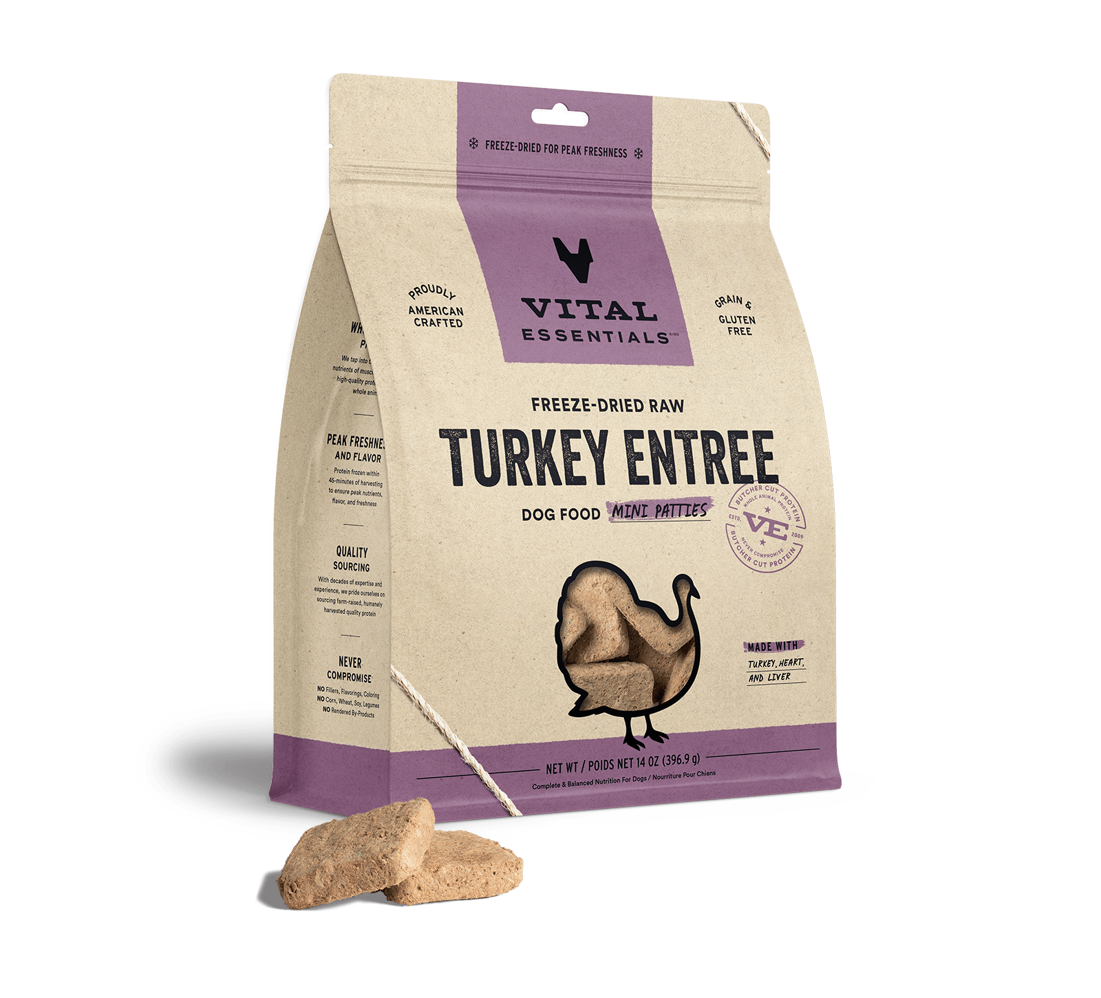 Vital Essentials Turkey Entree Mini Patties Freeze-Dried Raw Dog Food