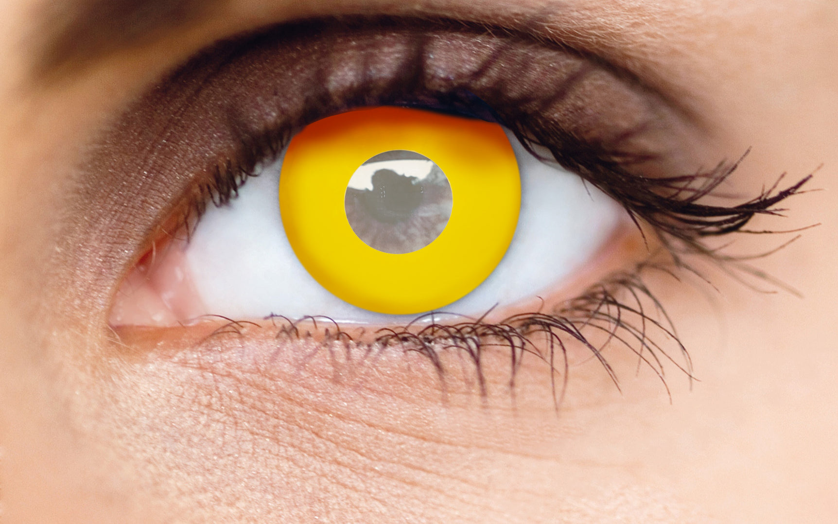 - Yellow Devil contact lens is designed to give your eyes a fiery and intense appearance. Featuring a captivating blend of deep black and vibrant yellow, these lenses create a mesmerizing and spellbinding look that's perfect for Halloween.